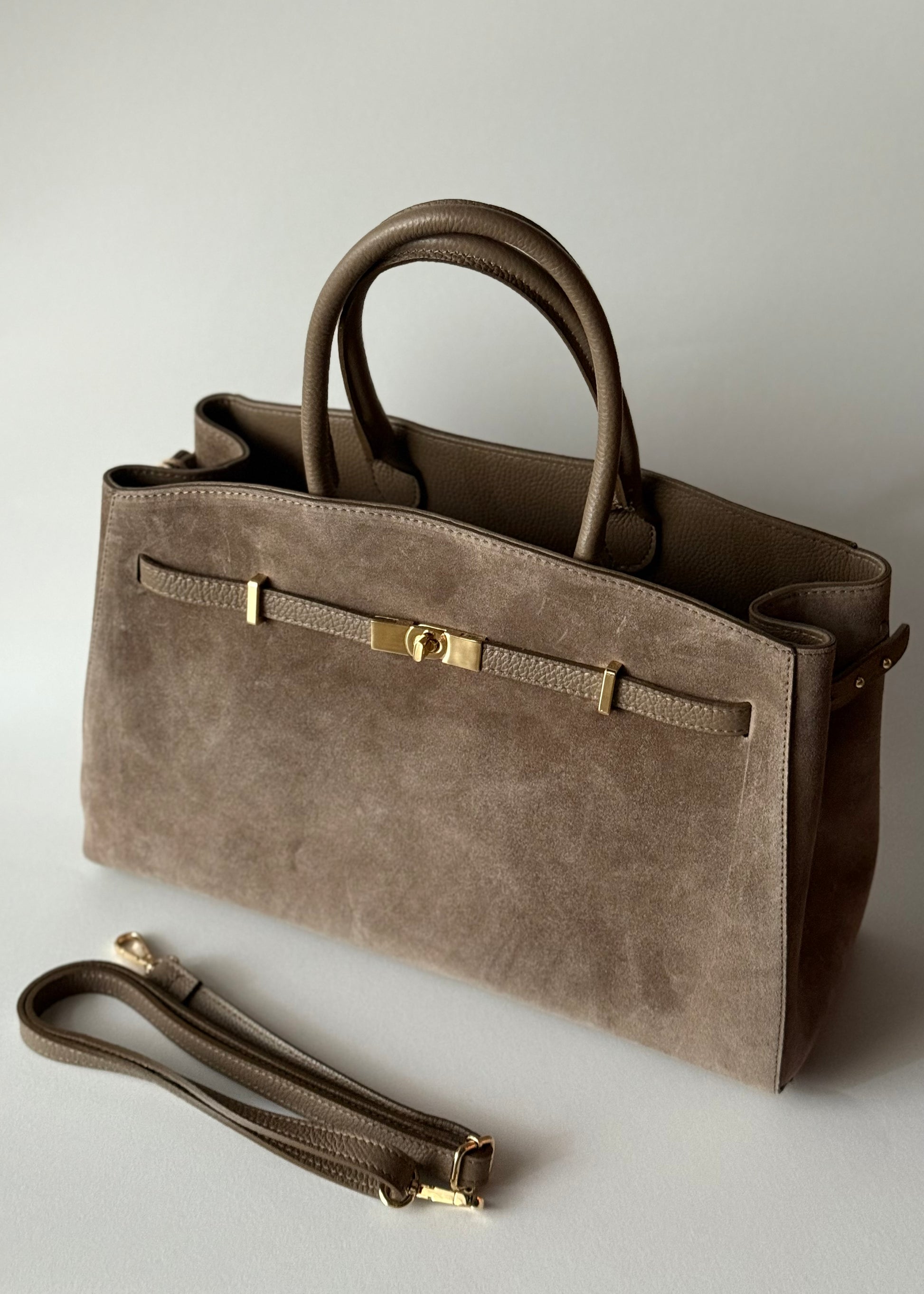 Borsa a Mano in Camoscio con Dettaglio Chiusura Oro