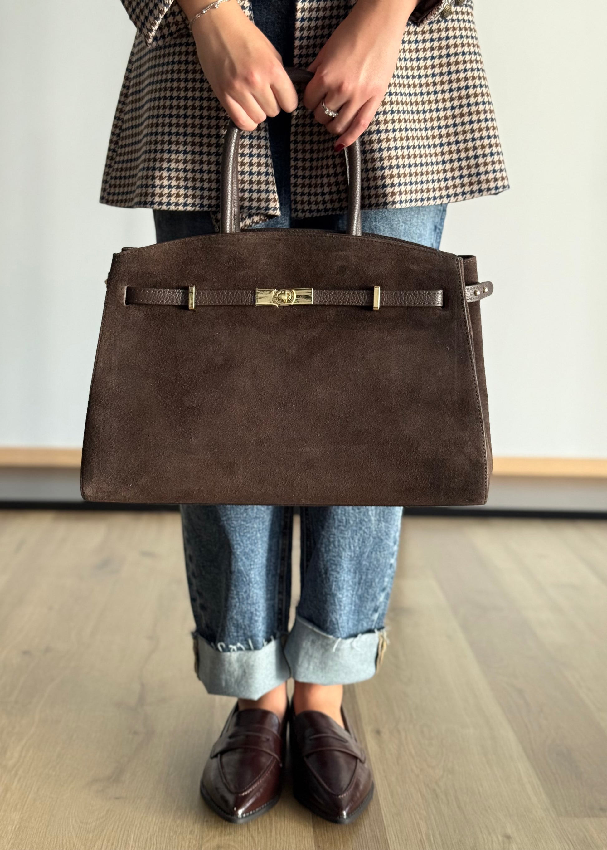 Borsa a Mano in Camoscio con Dettaglio Chiusura Oro