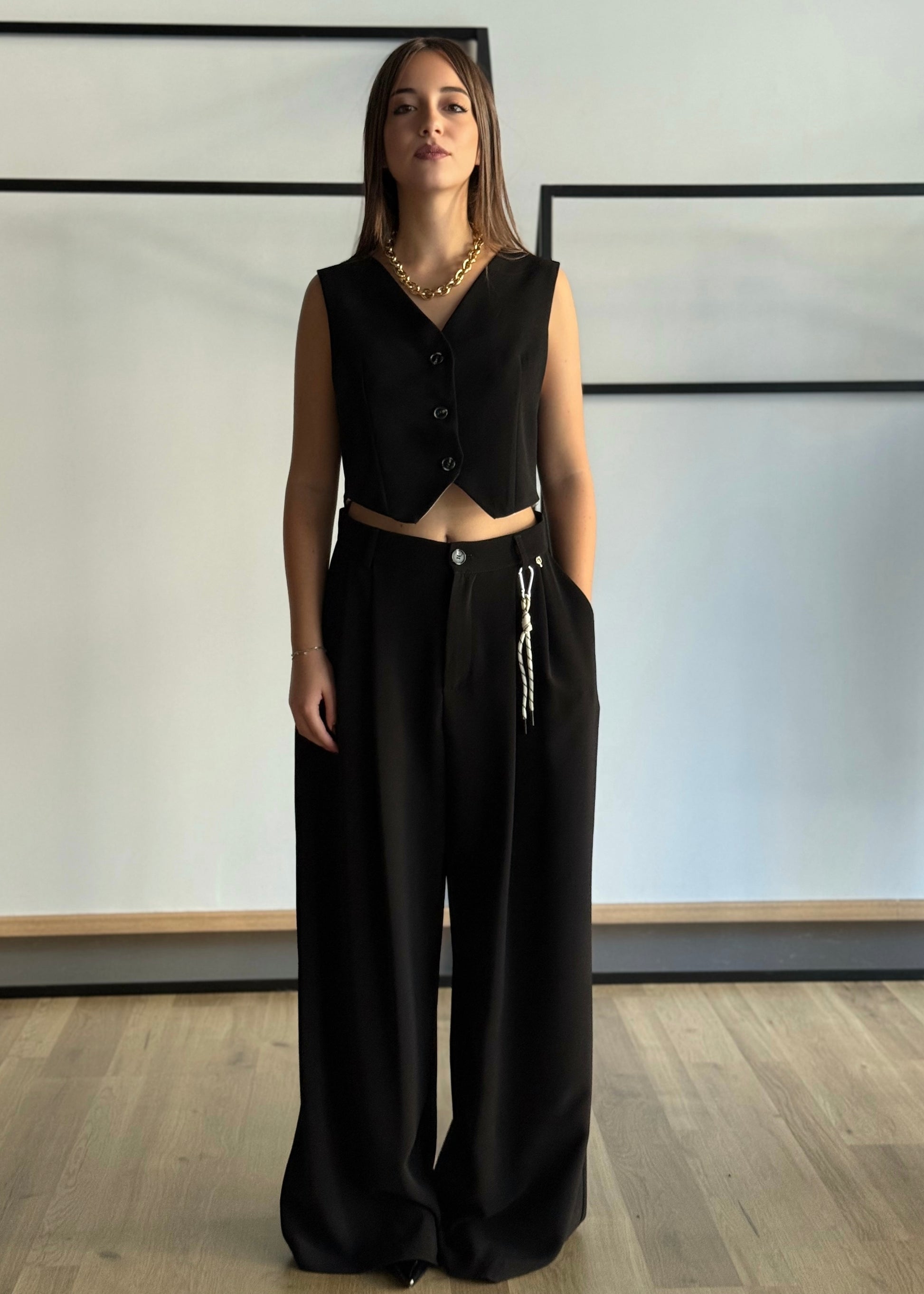 Coordinato gilet e pantalone palazzo in tessuto fluido -PHILIALOFT