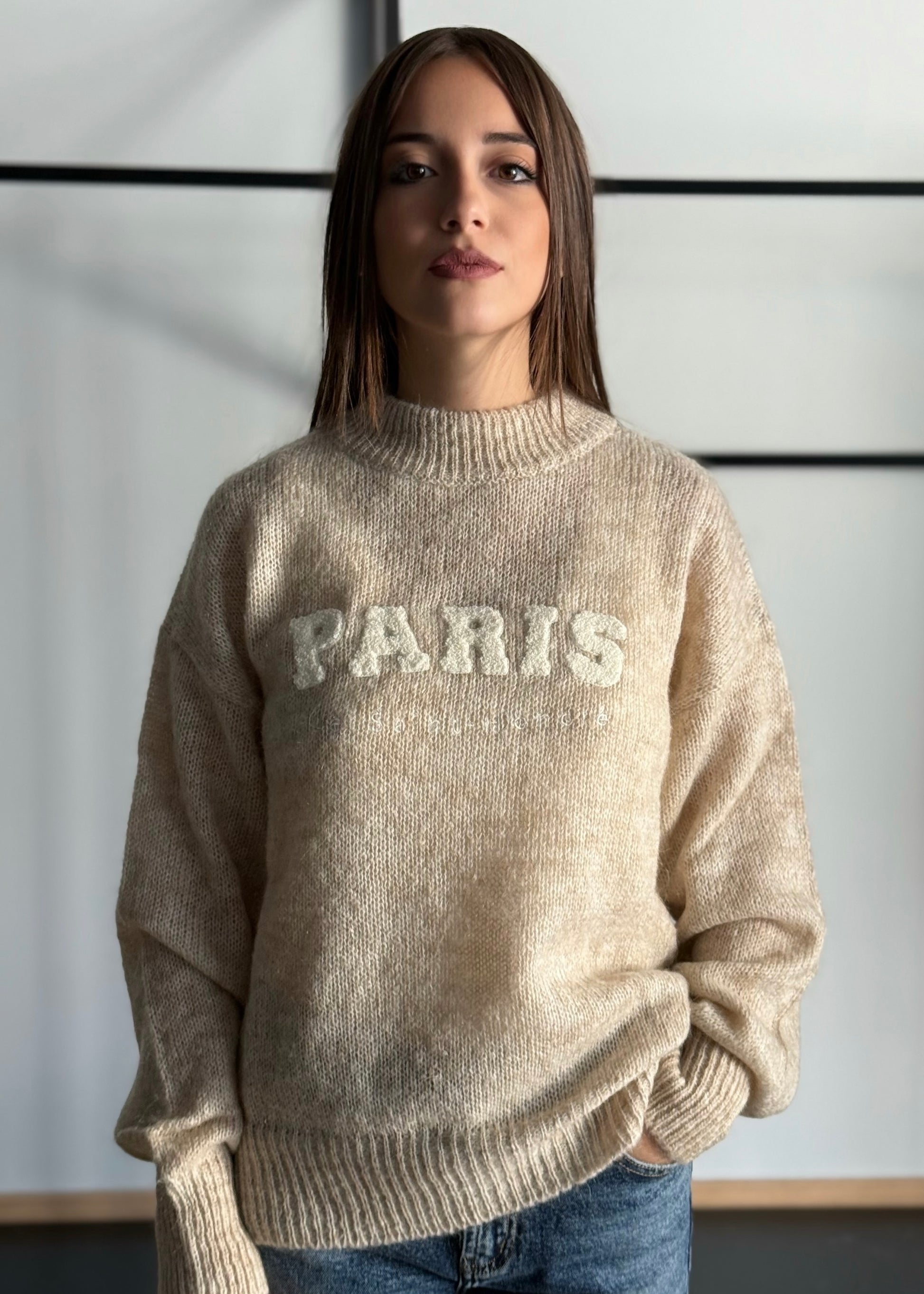 Maglia con ricamo “Paris Rue Saint-Honorè”
