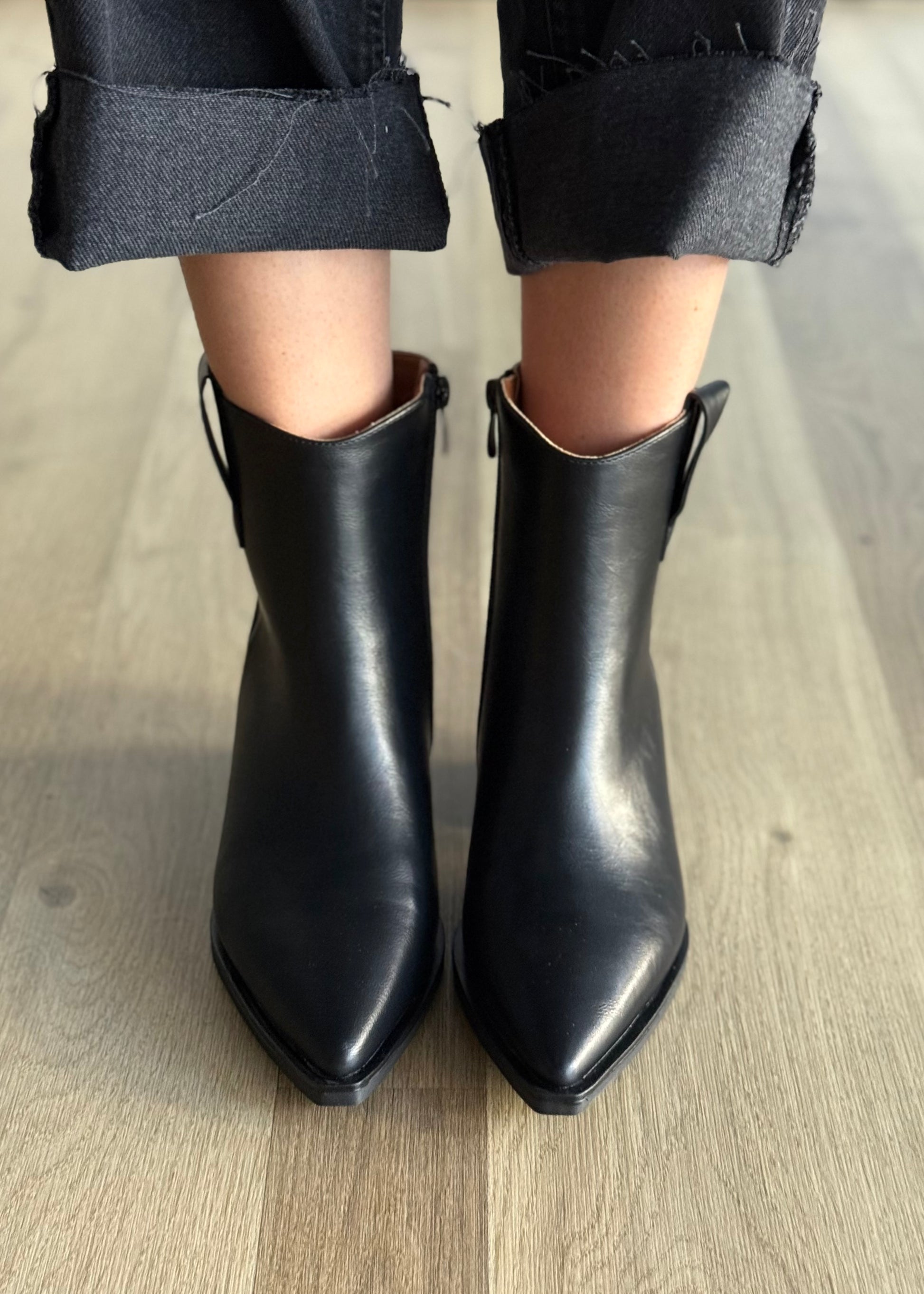 Stivaletto nero in ecopelle con punta affusolata e tacco basso